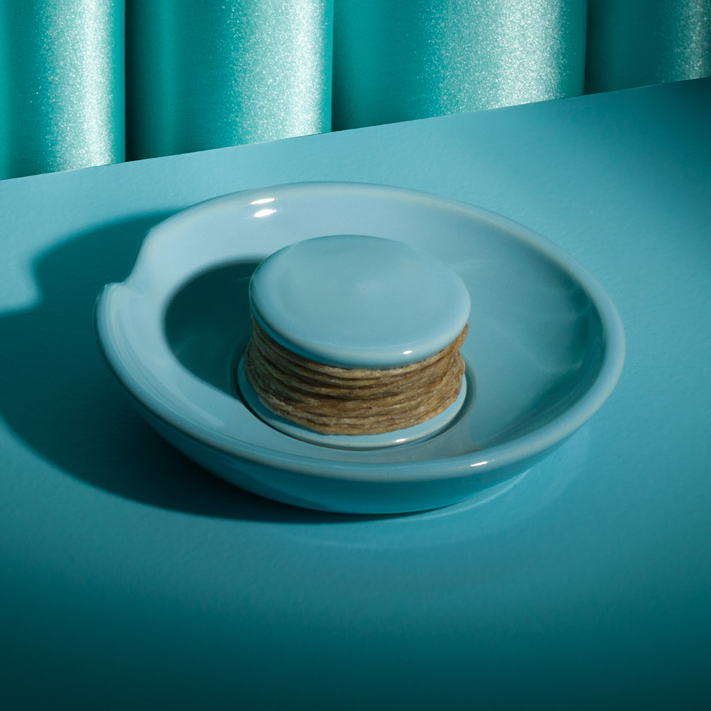 The Astor Hemp Wick Holder and Ashtray is a turquoise blue stoneware set that thinks of everything so you don't have to. The wick stays tidy, your smoke has somewhere to rest, and the whole thing nests together like it was always meant to live on your table.