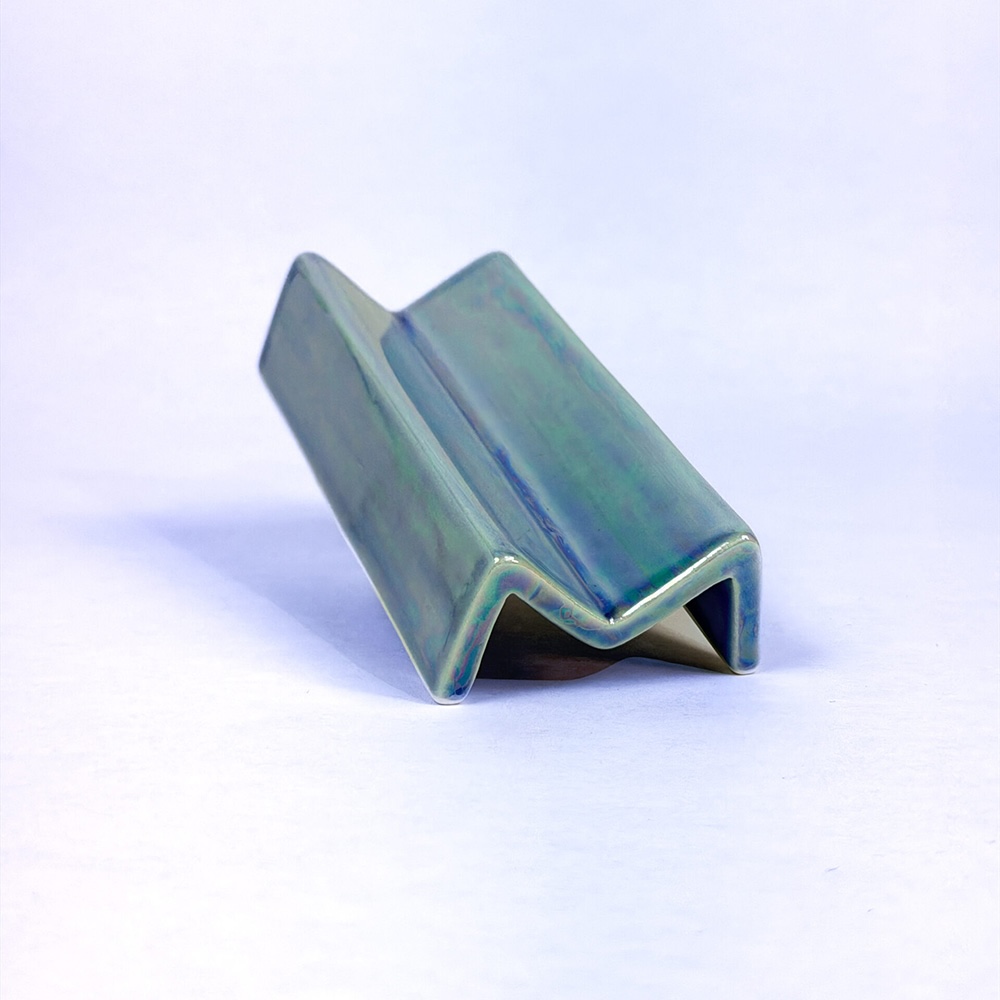 Just lay the crease of your paper in the dip of the tray and sprinkle in your mix. The M-shape keeps your flower in the middle of your paper instead of letting it scatter, which means a cleaner, easier roll every time. Never rolled before or just never quite nailed it? We have a step-by-step guide in our FAQs. When you're done rolling, it earns its place on the table on its own terms. Use it as an ashtray or just leave it out as the objet d'art it is. It's stoneware with a food-safe glaze, 4.25" x 1.75" x 1". Slight variations show the artist's hand.