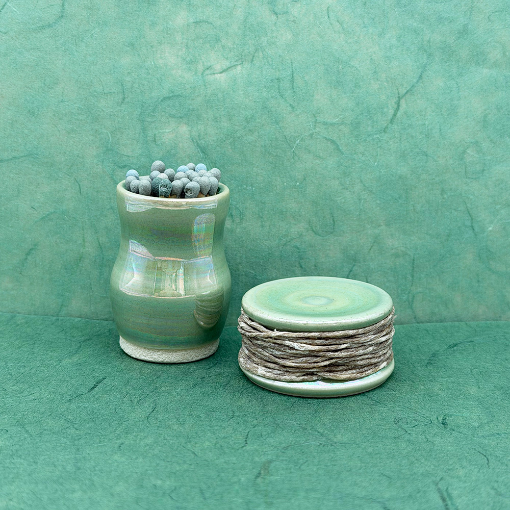 Strike your match on the plate underneath the striker. Use the lit match to ignite your hemp wick. Then use the wick to light your smoke low and slow, exactly the way it deserves to be lit. No butane, no chemicals, no shortcuts. Just a clean, considered light from start to finish. Two small objects, one very good habit. Each piece is handcrafted, so slight glaze variations are part of the deal. No two are exactly alike.