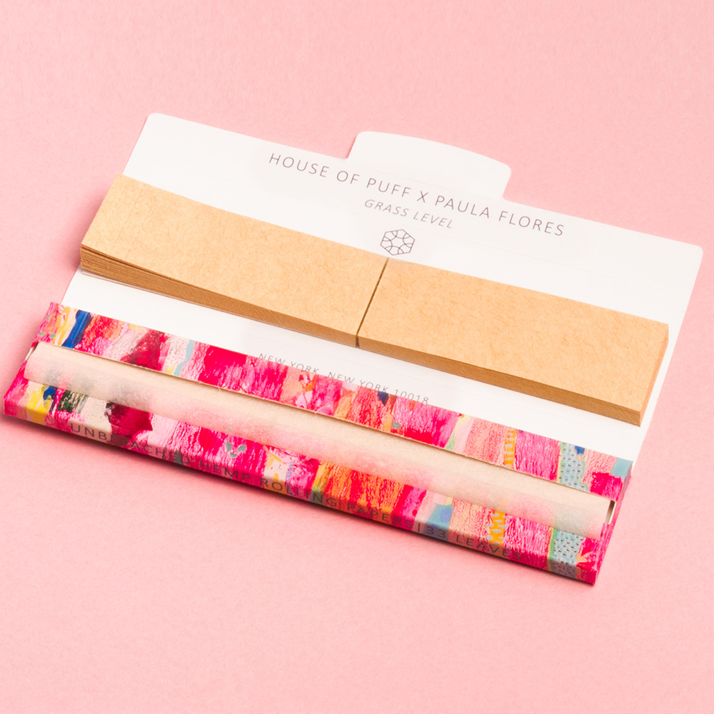 For the first edition of our artist series, we partnered with internationally acclaimed Latina artist Paula Flores. These papers are wrapped in her original painting, Grass Level, a vibrant, colorful work that asks us to see the world through the eyes of its smaller creatures. Paula believes that better interspecies communication leads to better environmental outcomes, and her art makes that case beautifully. It's a reminder that the planet works best when everyone in it is considered, right down to the ones closest to the ground.