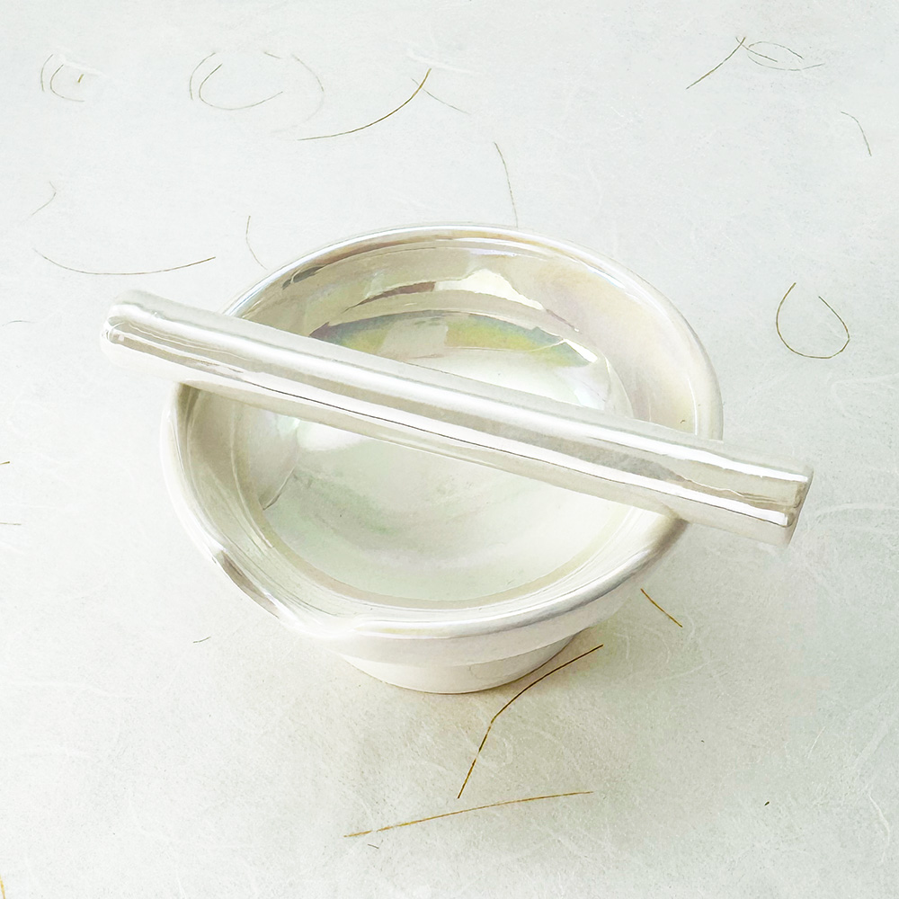 Both pieces are made from stoneware with a food-safe glaze. Hand wash only. Each piece has slight glaze variations. No two are exactly alike. Replace either piece if any cracks or crazing develop over time.