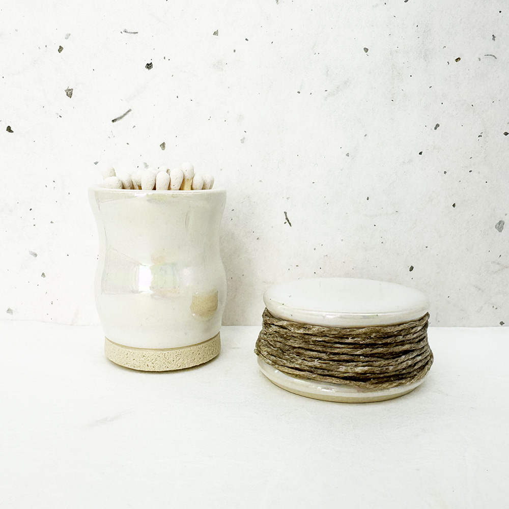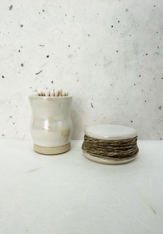 Strike your match on the plate underneath the striker. Use the lit match to ignite your hemp wick. Then use the wick to light your smoke low and slow, exactly the way it deserves to be lit. No butane, no chemicals, no shortcuts. Just a clean, considered light from start to finish. Two small objects, one very good habit. Each piece is handcrafted, so slight glaze variations are part of the deal. No two are exactly alike.