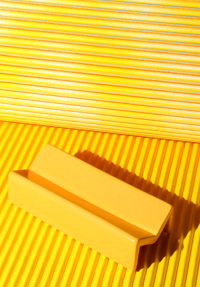 This yellow is called Mickalene Marigold, named for Black artist Mickalene Thomas. She made a portrait called Din, Une Tres Belle Negresse #2 that is so bold and alive it basically dares you to look away. Capturing this yellow was no small feat. It took a long time to get it right. That's the point. Some colors demand to be taken seriously. It's one of 9 colors the Nebula Tray comes in.